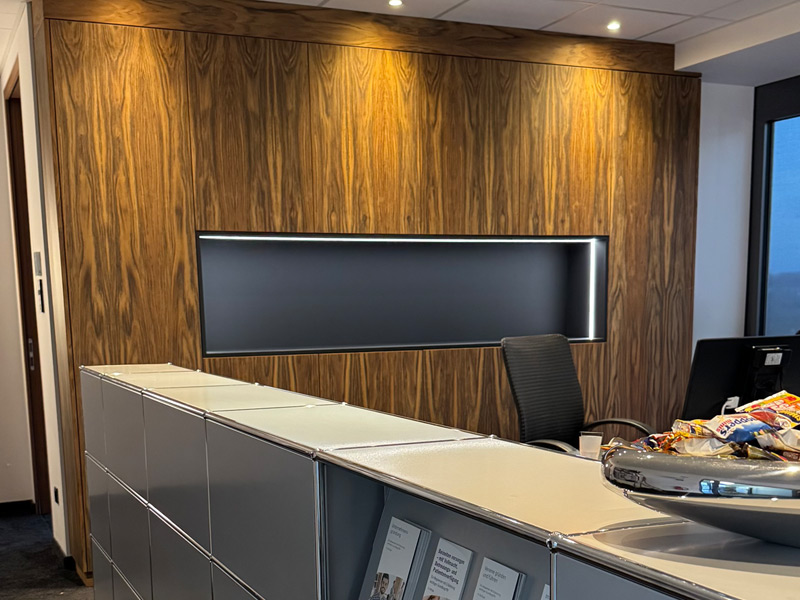 Im Ladenbau verbinden wir handwerkliches Können mit einem guten Gespür für Präsentation und Funktion. Wir gestalten und realisieren maßgeschneiderte Einrichtungslösungen für Verkaufs- und Geschäftsräume, die sowohl ästhetisch als auch praktisch überzeugen. Von Regalen und Theken über Wandverkleidungen bis hin zu individuellen Möbeln. Wir schaffen Lösungen, die Marken und Produkte optimal in Szene setzen. Durch unsere Erfahrung im Innenausbau garantieren wir eine termingerechte, saubere und detailgenaue Umsetzung.